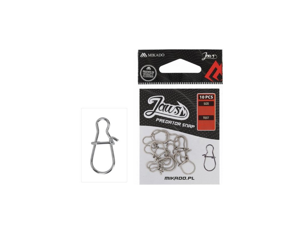 Vysoce kvalitní karabinka JAWS PREDATOR SNAP od značky Mikado, určená především pro přívlač. Díky použití pružinového drátu nejvyšší třídy se karabinka vyznačuje vysokou odolností a spolehlivostí při používání.